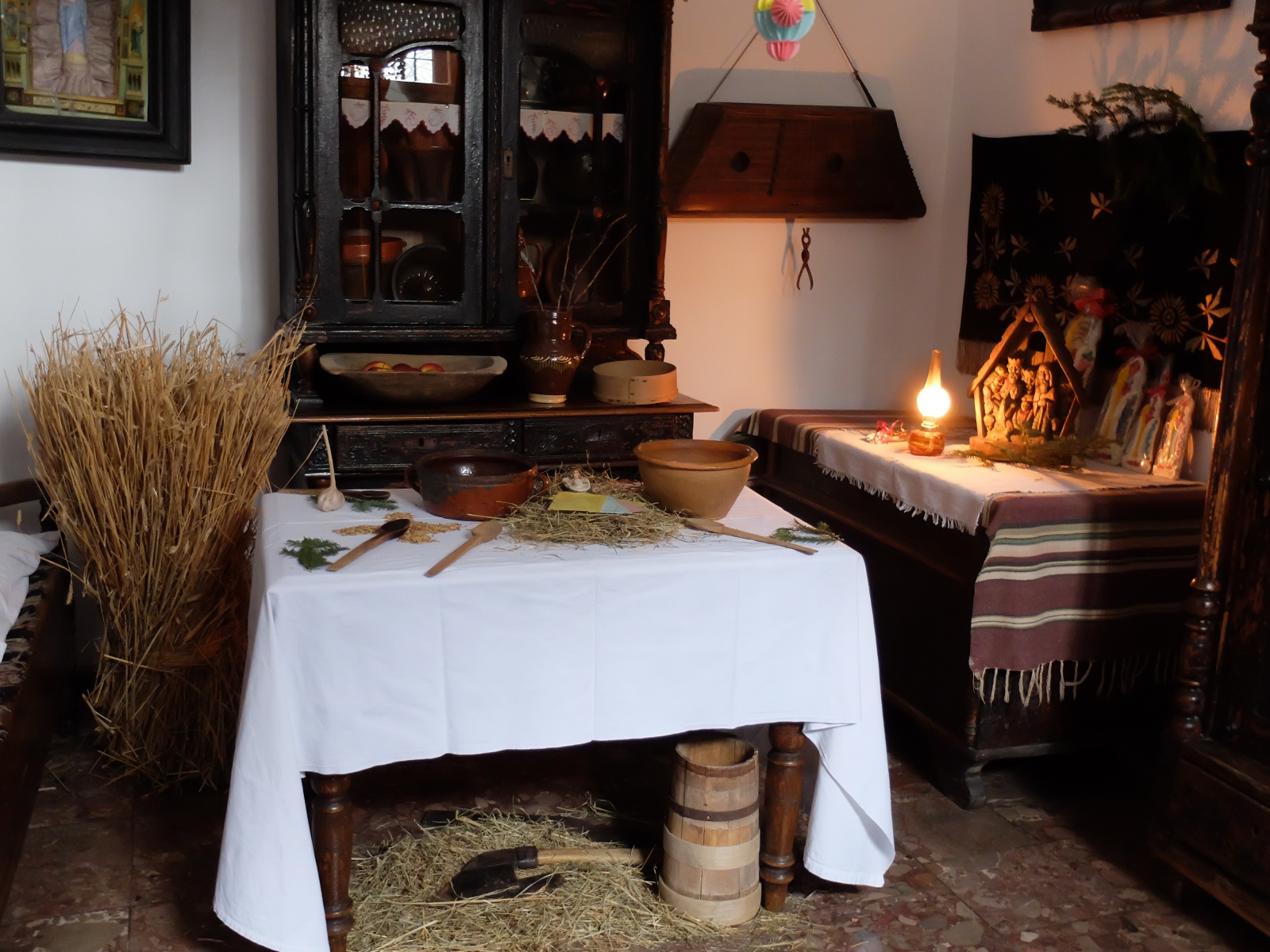 Štedrý deň, nazývaný aj „Vilija“, sa slávila veľmi slávnostne, preto rozhodovala o neopakovateľnom charaktere celých sviatkov. V podstate tento deň je vrcholom adventného čakania na príchod Dieťaťa. Na tento deň čakali všetci, netrpezlivé boli predovšetkým deti, hoci len kvôli tomu, že sa počas Štedrej večere mohli dosýta najesť, predsa v tento deň sa všetci naozaj postili. Počas Štedrého dňa sa ozdoboval stromček, ktorý sa prinášal z lesa. Na vianočnom stromčeku sa vešali jablká, orechy ovinuté do ozdobných papierikov, a ručne vyrábané ozdoby, ako napr. reťaze zo slamy. Pod stropom sa vešali ručne vyrábané reťazové oblúky. Neskôr gazdiná prikryla stôl bielym obrusom, pod ktorý kládla seno. Gazda prinášal snop obilia, ktorý stál v rohu izby. Samozrejme všetky činnosti mali svoju hlbokú symboliku. Na Štedrý deň všetci dávali pozor, aby do domu ako prvá nevošla žena, pretože v takom prípade bolo nešťastie v nasledujúcom roku zaručené. Keď prišla prvá žena, znamenalo to chorobu, neúspech na gazdovstve, nešťastie a možno aj smrť. Aby k tomu nedošlo, od ranných hodín prichádzali na návštevu „na prvého“ mladí chlapci, ktorí za to dostávali žemle, alebo dospelí, ktorých sa ponúkali kalíškom vodky. Medzi hosťami neradi videli osoby oblečené do kožucha ani starých ľudí. Po západe slnka sa čakalo na prvú hviezdu, a keď sa zjavila, považovalo sa to za „povolenie“ sadnúť si k štedrovečernému stolu. Na stole muselo byť tradične 12 jedál. Boli to okrem iného: cviklový boršč, hríbová polievka, pirohy s kapustou, rôzne druhy kaší s hríbovou omáčkou, kuťa, makovníky s maslom, a tiež kompót so sušeného ovocia. Na štedrovečernom stole sa okrem jedál, sviec a oblátok s medom, kládli aj obilné zrná. Pod stolom bola postavená maselnica, do ktorej sa vyhadzovali zvyšky jedla, ktoré sa neskôr dávali dobytku. Všetkým štedrovečerným jedlám sa pripisovali symbolické významy: oblátka symbolizovala zhodu a jednotu, chlieb blahobyt, koláče mali zaručiť úspešný nový rok, obilné zrná mali byť zdrojom každodennej energie, ryba pripomínala krst a zmŕtvychvstanie, hrach chránil pred chorobami, mak bol symbolom plodnosti, jablko chránilo pred bolesťami hrdla, a orechy pred bolesťami zubov. Na niektorých sviatočných stoloch bolo tiež vrecko s peniazmi, čo malo zabezpečiť dobrobyt v nastávajúcom roku. Večeru zahajoval gazda, ktorý zapaľoval sviecu na stole, kým niekto iný zapaľoval sviečky na stromčeku. Potom sa spoločne modlili „Anjel Pána“, „Otče náš“, „Zdravas‘ Mária“ a modlitbu za zomrelých. Otec rodiny tiež čítal fragment evanjelia podľa Lukáša o narodení Dieťaťa. Potom nasledovalo tradičné delenie oblátky, počas ktorého mali starší vždy prednosť. Prvý začínal najstarší člen rodiny, ktorý sa delil oblátkou so všetkými, samozrejme v poradí od najstaršieho po najmladšieho. Počas delenia sa oblátkou si všetci skladali rôzne priania a vinše. Otec rodiny pri delení sa oblátkou hovoril: „Deľte sa týmto anjelským chlebom, aby sme sa streli v Kráľovstve Nebeskom“. Počas večere musel každý ochutnať zo všetkých jedál. Ak niekto náhodou na niektoré jedlo zabudol, v nastávajúcom roku mu „isto“ utečú rôzne príjemné veci. |