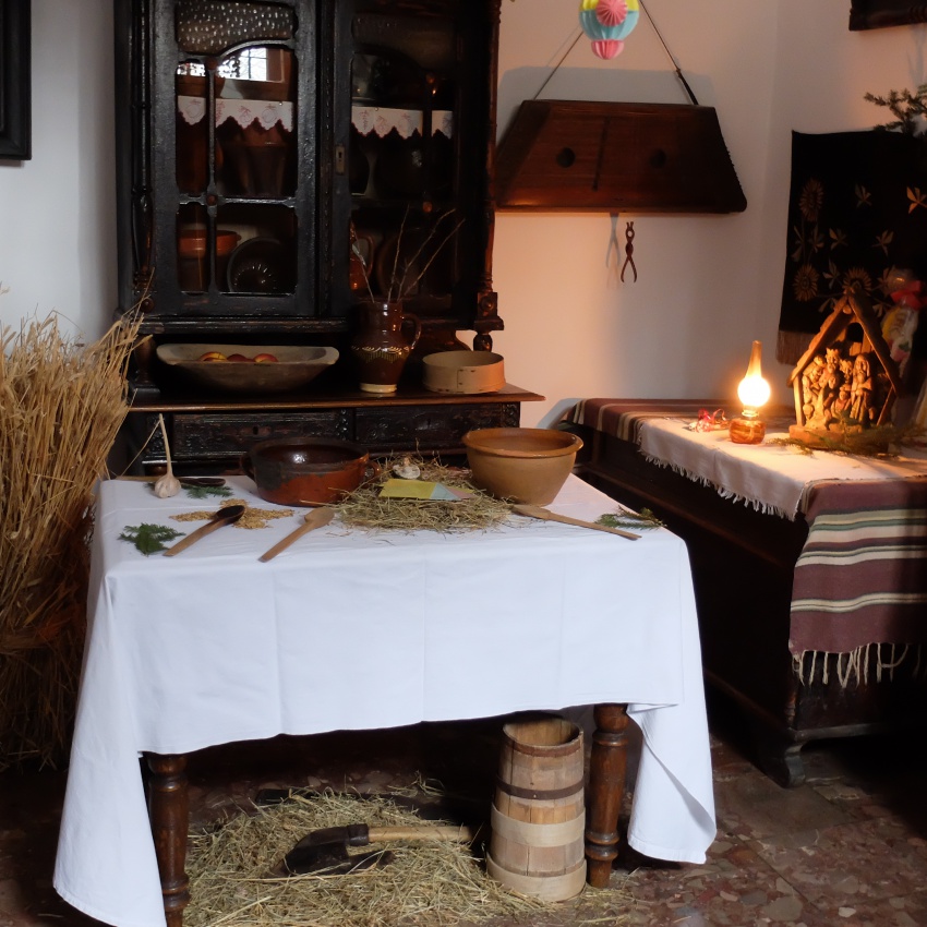 Až do konca 1. svetovej vojny sa všetky jedlá jedli drevenými lyžicami z jednej hlinenej misky. Keď sa zjedlo jedno jedlo, gazdiná nakladala druhé, a ostatní medzitým spievali koledy alebo v tichu čakali na ďalšie jedlo. V súčasnosti má už každý svoj tanier, pri ktorom sa avšak stále kladú peniaze. Okrem toho si ľudia chceli zabezpečiť hojnosť peňazí vložením šupín vianočného kapra do peňaženiek, aby peňaženky nikdy neboli prázdne. Rodina po večeri čakala na polnočnú sv. omšu, pričom sa spievali koledy a spomínalo sa na udalosti v predchádzajúcom roku. Štedrý večer bol tiež časom stretnutí s rodinou, po večeri sa navštevovali blízki, často sa stávalo, že do polnočnej omše sa navštívilo 5 až 6 domov. Keď niekto vchádzal do domu, domácich pozdravoval slovami: Na šťastie, na zdravia, na ten Štedrý deň, nech je pochválený Ježiš a Mária“. Deti po večeri chodili „po štedrákoch“ s košíkom v rukách, do ktorého vkladali biele žemle nazývané štedráky. Mládež v tom čase vychádzala z domu „na zbytki“ – vyťahovali a ukrývali dvere a bráničky. Mnohé sa našli, až keď sa na jar roztopil sneh. V Štedrý večer panoval aj iný zvyk – dievčatá na latách plotu rátali, za koho sa vydajú, či to bude mládenec a či vdovec. Udierali tiež lyžicami a počúvali, z ktorej strany zabreše pes, pretože z tej strany bude budúci muž. Po Štedrej večeri a po spoločnom koledovaní všetci domáci išli na slávnostnú polnočnú sv. omšu. Počas cesty do kostola spievali koledy a pastorálky. Pred polnočnou sv. omšou gazdovia vychádzali k dobytku so špeciálnou zelenou, ružovou alebo modrou oblátkou, ktorú najčastejšie kládli medzi krajce chleba. Gazdiná v tom čase upratovala po Štedrej večeri, najprv umyla lyžice, potom zvyšku riadu, a nakoniec vyniesla pomyje do chlievu, aby nimi nakŕmila zvieratá. Súčasné tradície už nie sú v porovnaní s niekdajšími štedrovečernými tradíciami také bohaté a živé, a v mnohých domoch sa už nekultivujú dávne obrady. V súčasnosti už len málokto vie, čo znamenali symboly zapísané v obradoch a rituáloch prípravy večere, jedenia jedál, či správania domácich počas spoločnej večeri. Z dávnych bohatých štedrovečerných tradícií, ktoré mali originálny ľudový rodokmeň, sa dodnes mnohé nezachovali. Ľudia nepoznajú alebo „zabudli“ mnohé dávne koledy a pastorálky. Preto je také dôležité niektoré z nich zapísať a uchovať, možno niekedy opäť zaznejú… Na tomto mieste musíme podotknúť, že koledy spievané v okolí Przeworska sa končili charakteristickým zvolaním ,,hej, lelija”. Predstavujeme vám niektoré pastorálky, ktoré si zapamätali najstarší obyvatelia z dedín obce Przeworsk. |