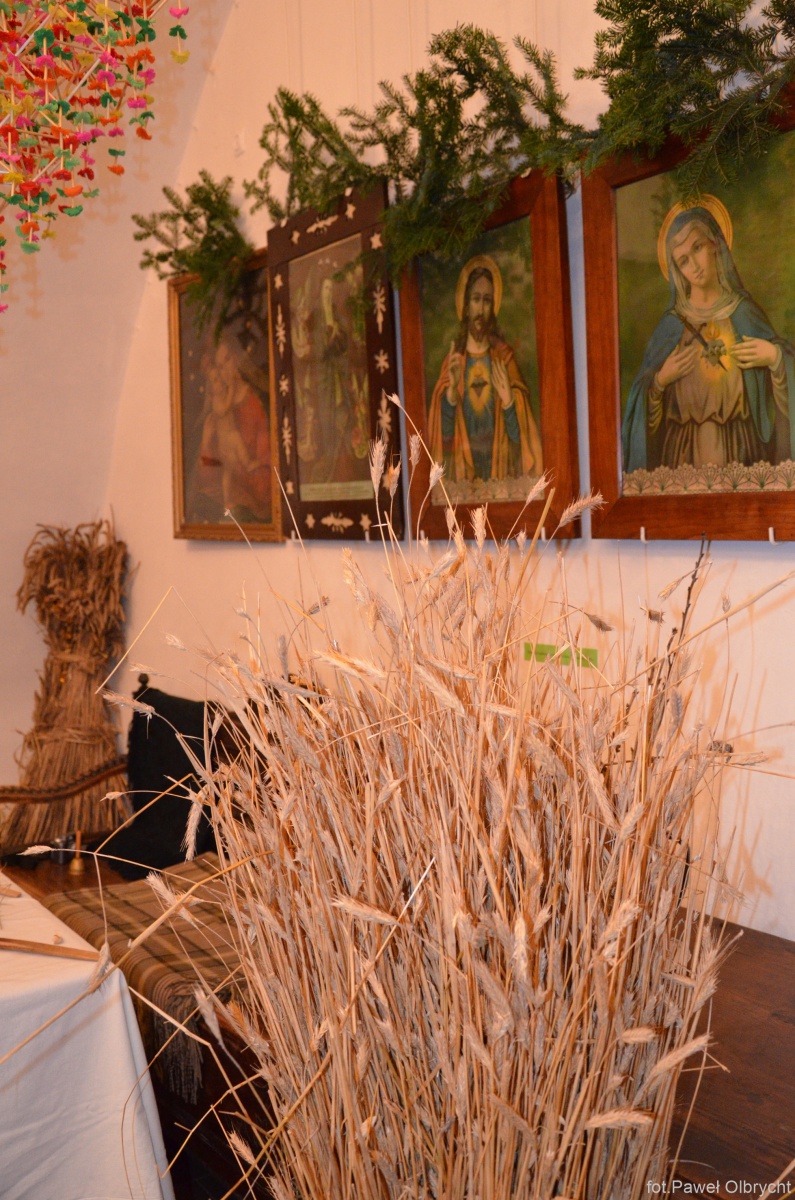 Wigilia Narodzenia Państkiego, zwana też ,,wilią” lub ,,wiliją” obchodzona była bardzo uroczyście, dlatego też decydowała o niepowtarzalnym charakterze całych świąt. W zasadzie ten dzień jest punktem kulminacyjnym adwentowego oczekiwania na przyjście Dzieciątka. Oczekiwali na ten dzień wszyscy, a szczególnie niecierpliwiły się dzieci chociażby z tego względu, że mogły się najeść do woli podczas wieczerzy wigilijnej, bo przecież w tym dniu wszyscy naprawdę pościli. W dniu wigilii ubierało się choinkę, którą przynosiło się z lasu. Wieszało się na niej jabłka, orzechy owinięte w ozdobne papierki i ręcznie wykonane ozdoby, m.in.łańcuchy ze słomy. U sufitu zawieszano także ręcznie wykonane pająki. Później gospodyni nakrywała stół białym obrusem, pod którym kładziono siano. Z kolei gospodarz przynosił snopek zboża, który ustawiano w rogu izby. Oczywiście czynności te miały swoją głęboką symbolikę. W dzień wigilijny powszechnie uważano, by do domu jako pierwsza nie weszła kobieta, bo wtedy było już zagwarantowane nieszczęście przez cały nadchodzący rok. Przyjście kobiety jako pierwszej wróżyło chorobę, niepowodzenie w gospodarstwie, nieszczęście a nawet śmierć. Celem uniknięcia tego zagrożenia od wczesnych godzin rannych chodzili w odwiedziny ,,na pierwszego” młodzi chłopcy za co dostawali bułeczki bądź dorośli, którzy byli częstowani kieliszkiem wódki. Niemile wśród odwiedzających widziało się także osoby ubrane w kożuch bądź osoby stare. Wczesnym wieczorem wypatrywano pierwszej gwiazdki, a jej pojawienie się ,,upoważniało” do zasiadnięcia za wigilijnym stołem. Na stole obowiązkowo musiało znaleźć się 12 potraw. Był to m.in.: barszcz czerwony, zupa grzybowa, pierogi z kapustą, różne gatunki kasz z sosem grzybowym, kutia, zawijaki z makiem, a także kompot z suszonych owoców. Na wigilijnym stole, oprócz potraw, świec i opłatków z miodem, kładło się także ziarenka zboża. Natomiast pod stołem ustawiało się maśniczkę, do której wrzucano resztki jedzenia, by je później dać bydłu. Wszystkim potrawom wigilijnym przypisano symboliczne znaczenie: opłatek symbolizował zgodę i jedność, chleb – dobrobyt, wypieki z mąki zapewniały pomyślność w nowym roku, ziarna zbóż miały być źródłem codziennej energii, ryba przypominała o chrzcie, zmartchwychwstaniu, groch chronił przed chorobami, mak był symbolem płodności, jabłko miało chronić przed bólem gardła, a orzech przed bólem zębów. Na niektórych wigilijnych stołach była także sakiewka z pieniędzmi, co miało z apewnić dobrobyt w nadchodzącym nowym roku. Wieczerzę rozpoczynał gospodarz, zapalając świecę, ktoś inny zapalał w tym czasie świeczki na choince. Następnie wszyscy odmawiali ,,Anioł Pański”, ,,Ojcze Nasz”, ,,Zdrowaś Mario” oraz modlitwę za zmarłych. Ojciec rodziny odczytywał także fragment Ewangelii według św. Łukasza o narodzeniu Dzieciątka. Następnie odbywało się dzielenie opłatkiem, w którym obowiązowywała zasada starszeństwa. Pierwszy zaczynał najstarszy członek rodziny, który łamał się opłatkiem ze wszystkimi w kolejności od najstarszego do najmłodszego. Podczas dzielenia się opłatkiem wszyscy domownicy składali sobie wzajemnie przeróżne życzenia. Ojciec rodziny podczas łamania się opłatkiem wypowiadał słowa: ,,Dzielcie się tym chlebem anielskim, żebyśmy się spotkali w Królestwie Niebieskim”. Podczas wieczerzy każdej potrawy należało skosztować. Niezjedzenie jakiejś potrawy ,,skutkowało” ominięciem różnych przyjemności w przeciągu roku. |